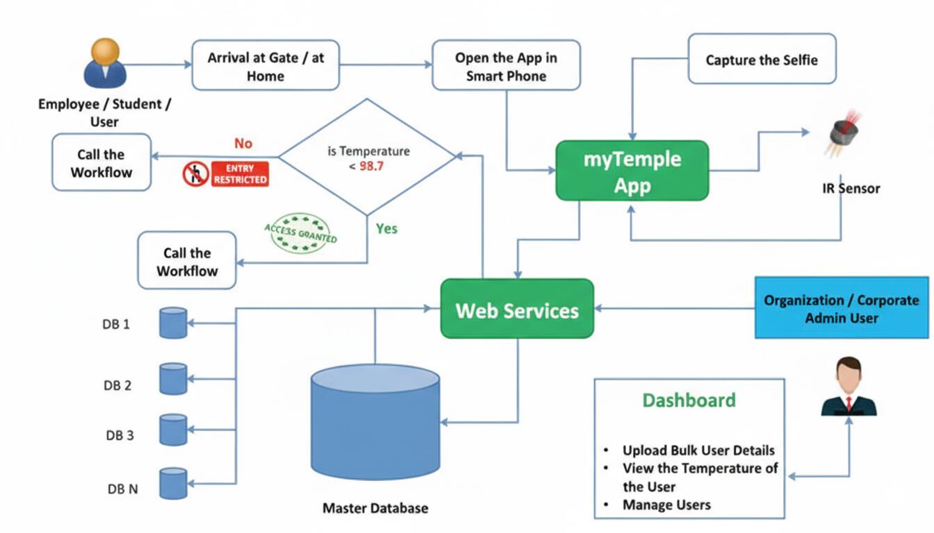 - If temperature is below the configured threshold, access is approved; otherwise, entry is restricted.